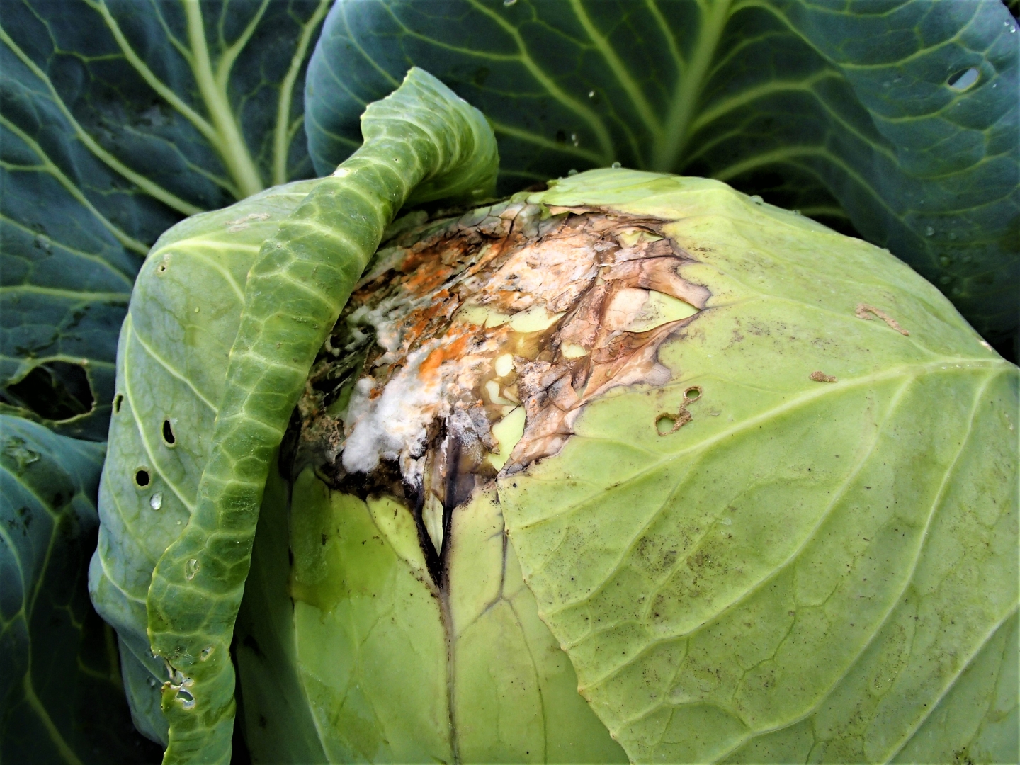 Reģiona kāpostu stādījumos ir novērojama arī krustziežu fuzariālā puve. Biežāk parādās jau veģetācijas beigās. 2025. gadā fuzariālās puves pazīmes monitoringa laukos tika novērotas kāpostu galviņas attīstības beigu stadijās. Slimības ierosinātājs augsnē var saglabāties ilgus gadus,pat līdz 20. Tāpēc arī šajā, 2026. gada sezonā, it sevišķi karstā laikā, fuzariālās puves attīstība uz augiem būs iespējama. Slimība postīgāka būs laukos, kur netiek ievērota augu maiņa, kā arī sabiezinātos un nezāļainos stādījumos. Savukārt izturīgu šķirņu izvēle mazinās inficēšanās riskus uz jau inficētiem laukiem.