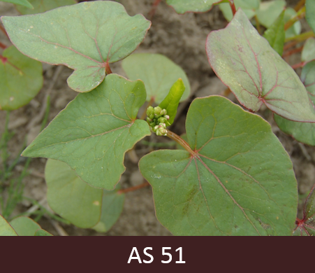 51 – Ziedpumpuru parādīšanās. Uz galvenā dzinuma saskatāmi pirmie zaļie pumpuri.