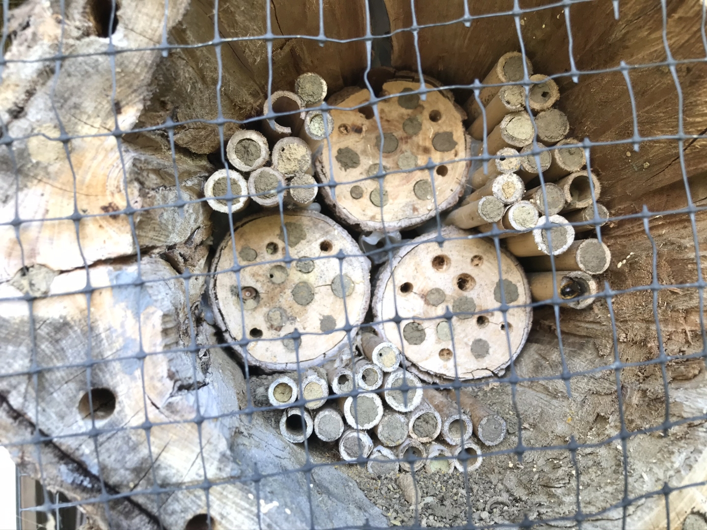 - Caurumi bitēm – niedres, salmi vai bambusa nūjas ir piemērotas vietas bitēm olu dēšanai. Urbumu veidošana koka gabalos arī iespējama, taču, lai piesaistītu daudzas bišu sugas, ir svarīgi piedāvāt dažāda izmēra caurumus.