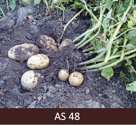 48 – Bumbuļi viegli atdalās no stoloniem, miza nenobriedusi. Vairumam bumbuļu izveidojusies raksturīgā masa, miza viegli atdalāma ar nagu.