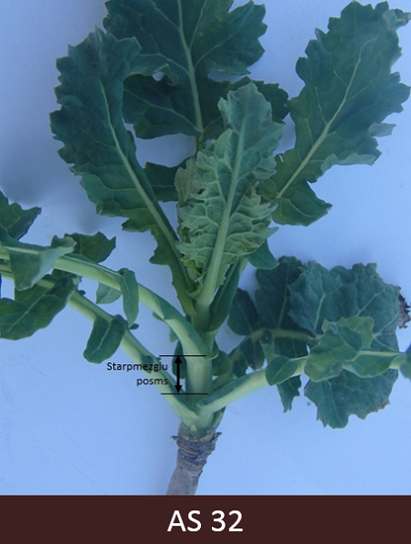 34 ... 38 – Četri ... astoņi starpmezglu posmi. AS 35 stublājs sasniedz apmēram pusi no raksturīgā garuma. Kad stublāja pagarināšanās laikā pamanāma ziedkopu veidošanās, auga attīstību turpina noteikt sākot ar AS 50.