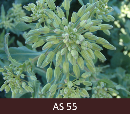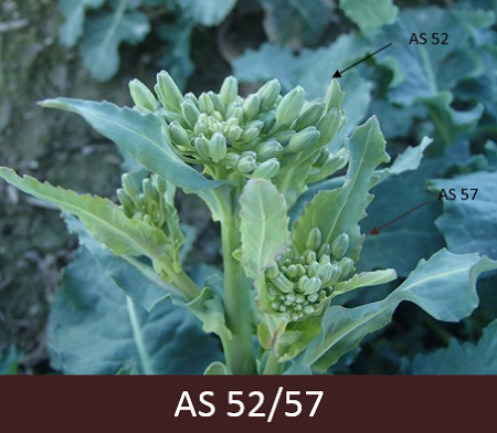 55 – Redzamas galvenās ziedkopas. Labi saredzamas ziedkopas uz galvenajiem dzinumiem, pumpuri atdalījušies, bet aizvērti.