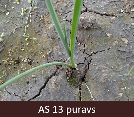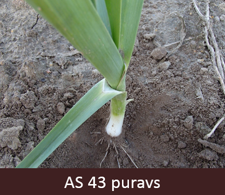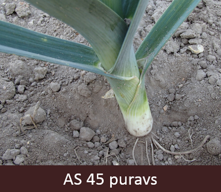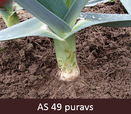 49 – Vākšanas gatavība. Lapas atmirušas, sīpola galotne sausa. Puravam raksturīgais stublāja diametrs sasniegts.