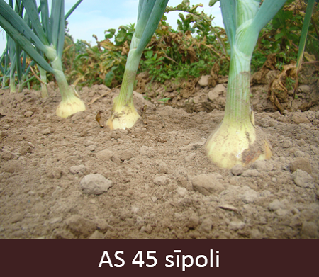 45 – Sīpols vai stublājs sasniedzis 50% no raksturīgā diametra.