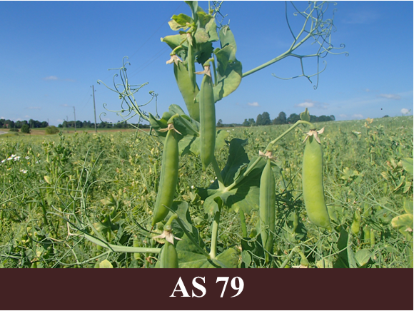 79 - Zaļgatavība. Pākstis sasniegušas raksturīgo garumu, zirņi izveidojušies.
